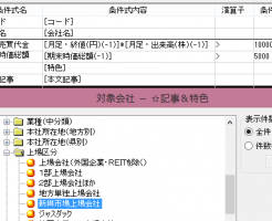 1年間、概念拡張を継続してきた成果:四季報が語り出す物語を楽しめる自分になる 更新日:2016年3月26日 公開日:2015年7月23日 シストレ茶飯事 四季報の記事一覧をプリントアウトして読み進めている。 すべての銘柄だと数が膨大なので、とりあえず新興銘柄で直近1ヶ月の売買代金が1億円以上(1日500万円以上想定)、時価総額50億円以上でスクリーニングした。 新興銘柄に […] 続きを読む